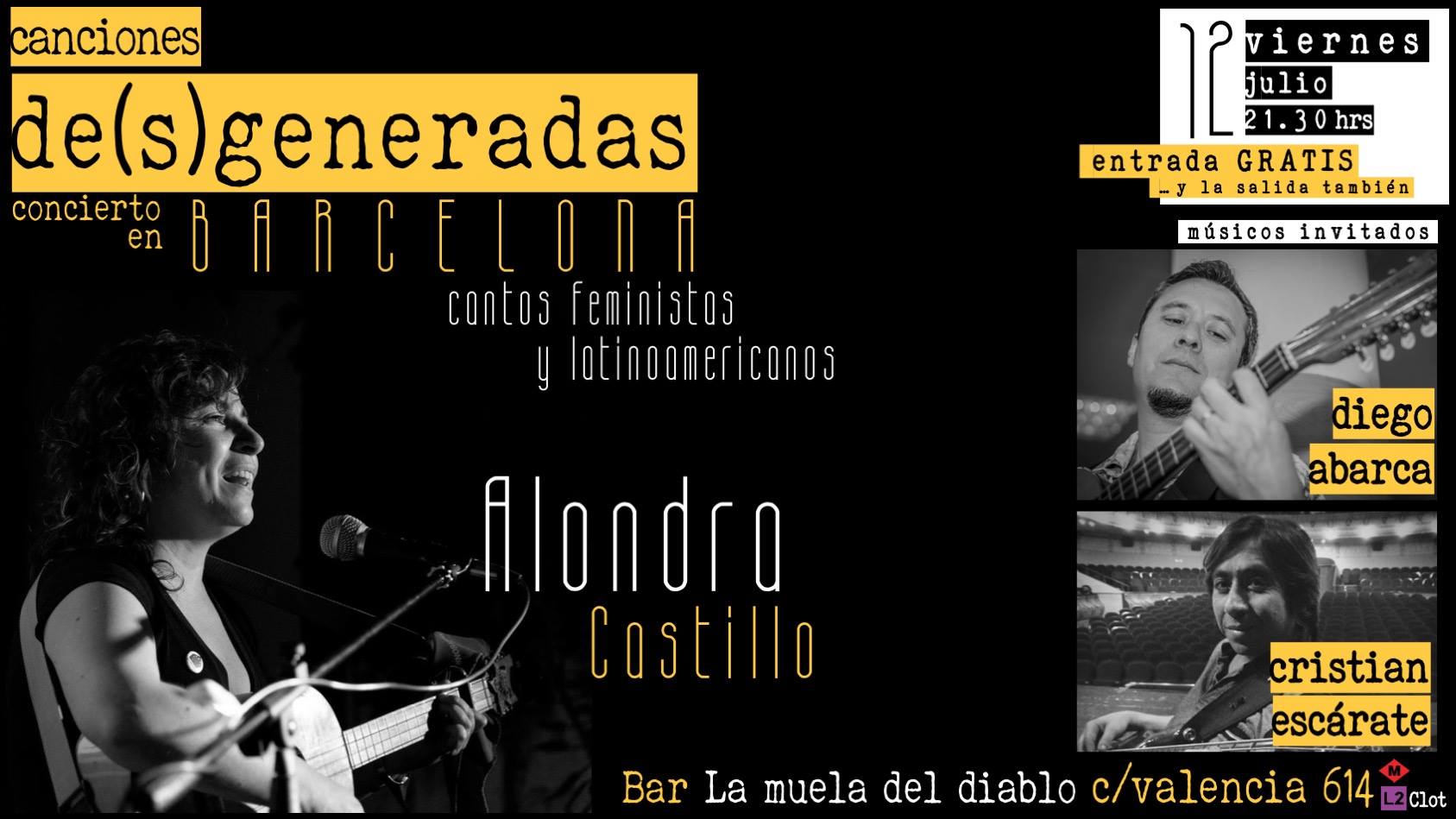 Alondra Castillo Delgado, chilena, nacida en Machali ( Rancagua) cantautora, feminista. Activista lesbofeminista… Fonoaudióloga, musicoterapeuta, académica universidad de Valparaíso y actualmente vive en Santiago haciendo un doctorado en Salud Pública. Canta desde toda la vida… compone desde hace unos 2 años más o menos, su trabajo es de denuncia y crítica social feminista..